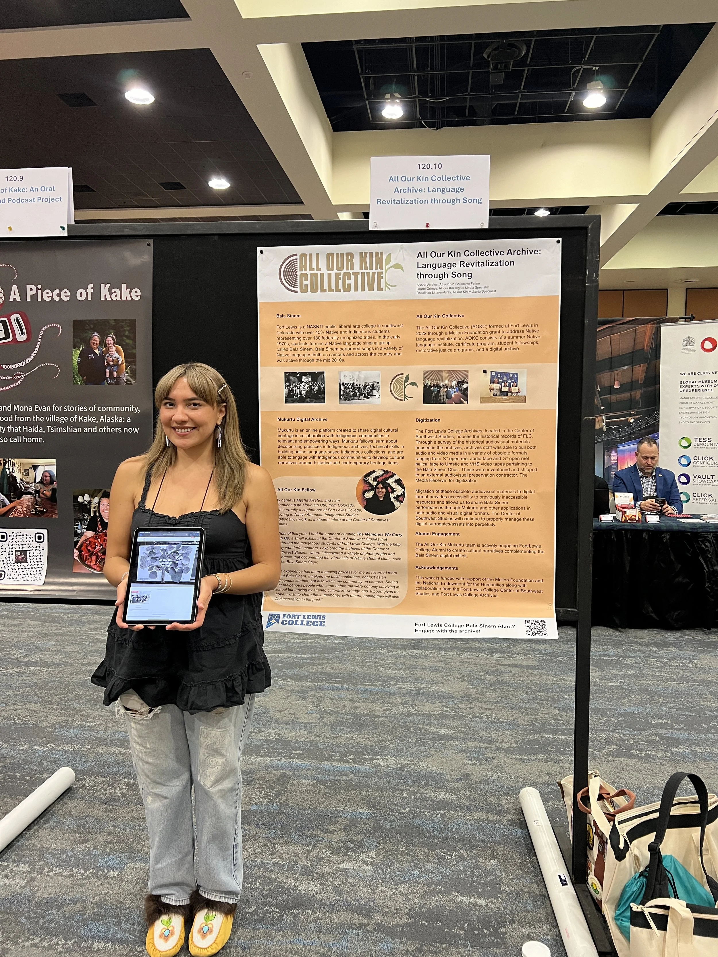 All Our Kin Collective student fellow Alysha Arrates (Ute Mountain Ute) focused her 2024 fellowship project on developing a Mukurtu collection for Bala Sinem, an Indigenous language singing group run by Fort Lewis College students from 1971-2013. Alysha worked closely with FLC’s Center of Southwest Studies Collections Manager & NAGPRA Specialist, Amy Cao, and the AOKC Mukurtu Administrator, Rosalinda Linares-Gray, to research, develop, and upload the collection.